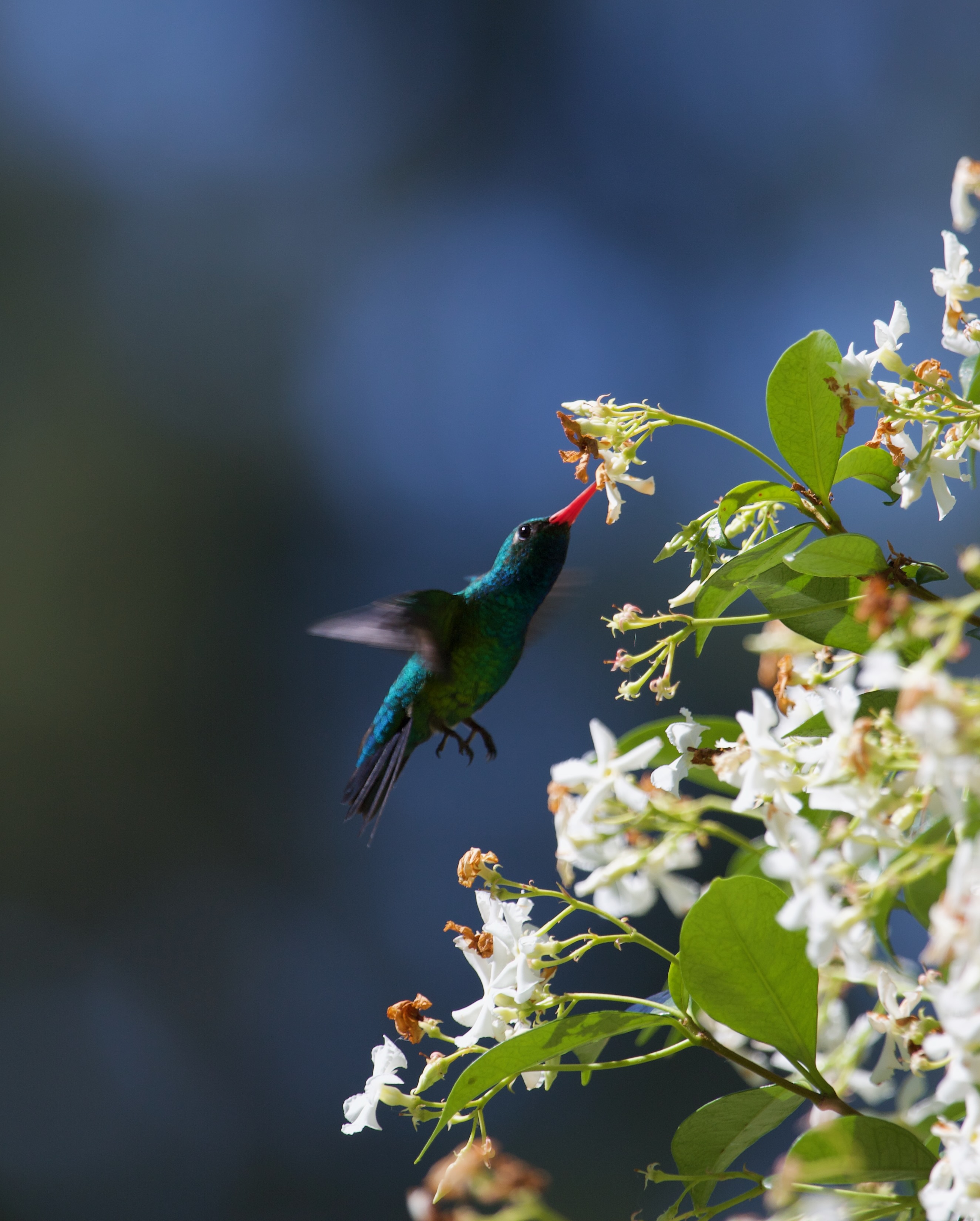 I spent hours trying to get a decent shot of hummingbird. They are very tricky, as I discovered trying to do the same in Cuba. I think this species is related:
